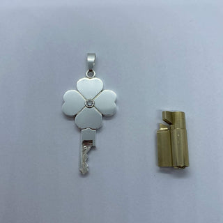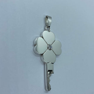 This handmade silver chastity key is also available without a diamond.