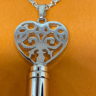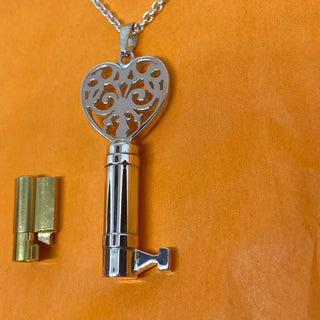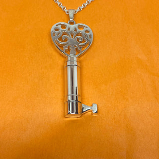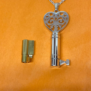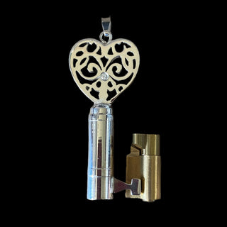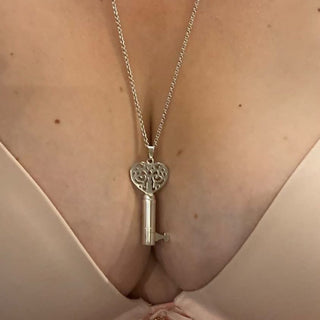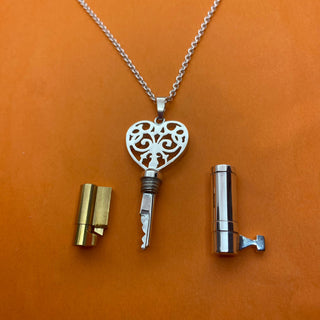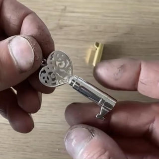 Der handgefertigte Keuschheitsschlüssel ist in der silbernen Röhre versteckt.