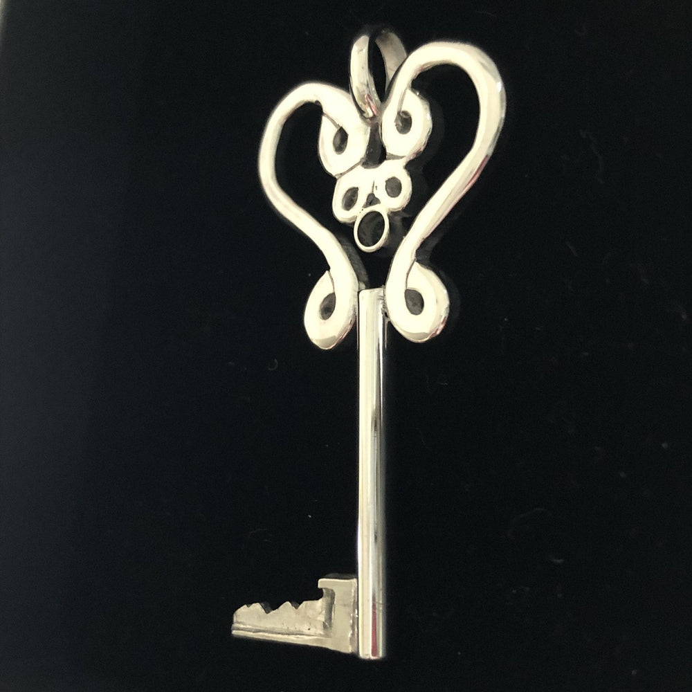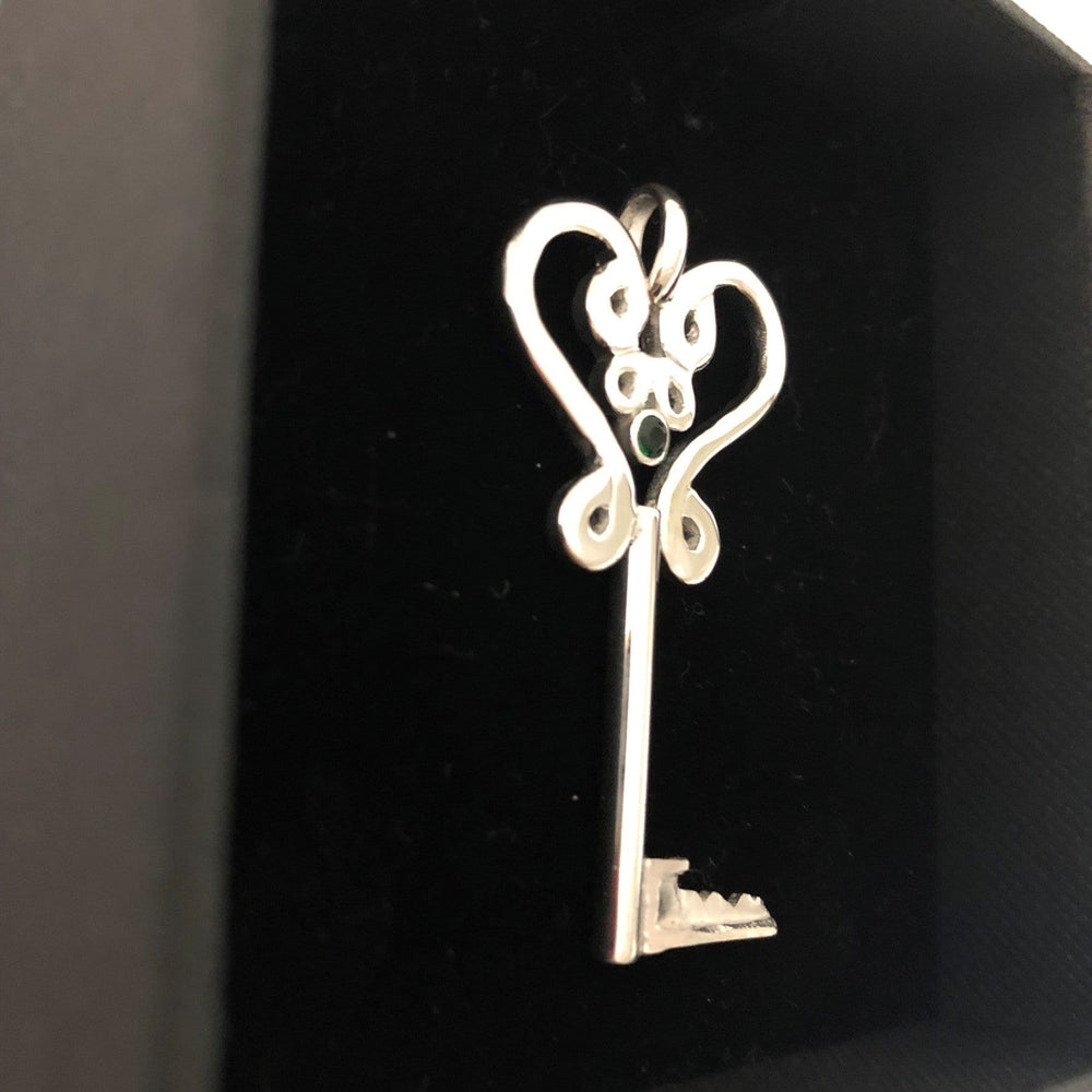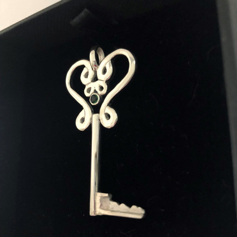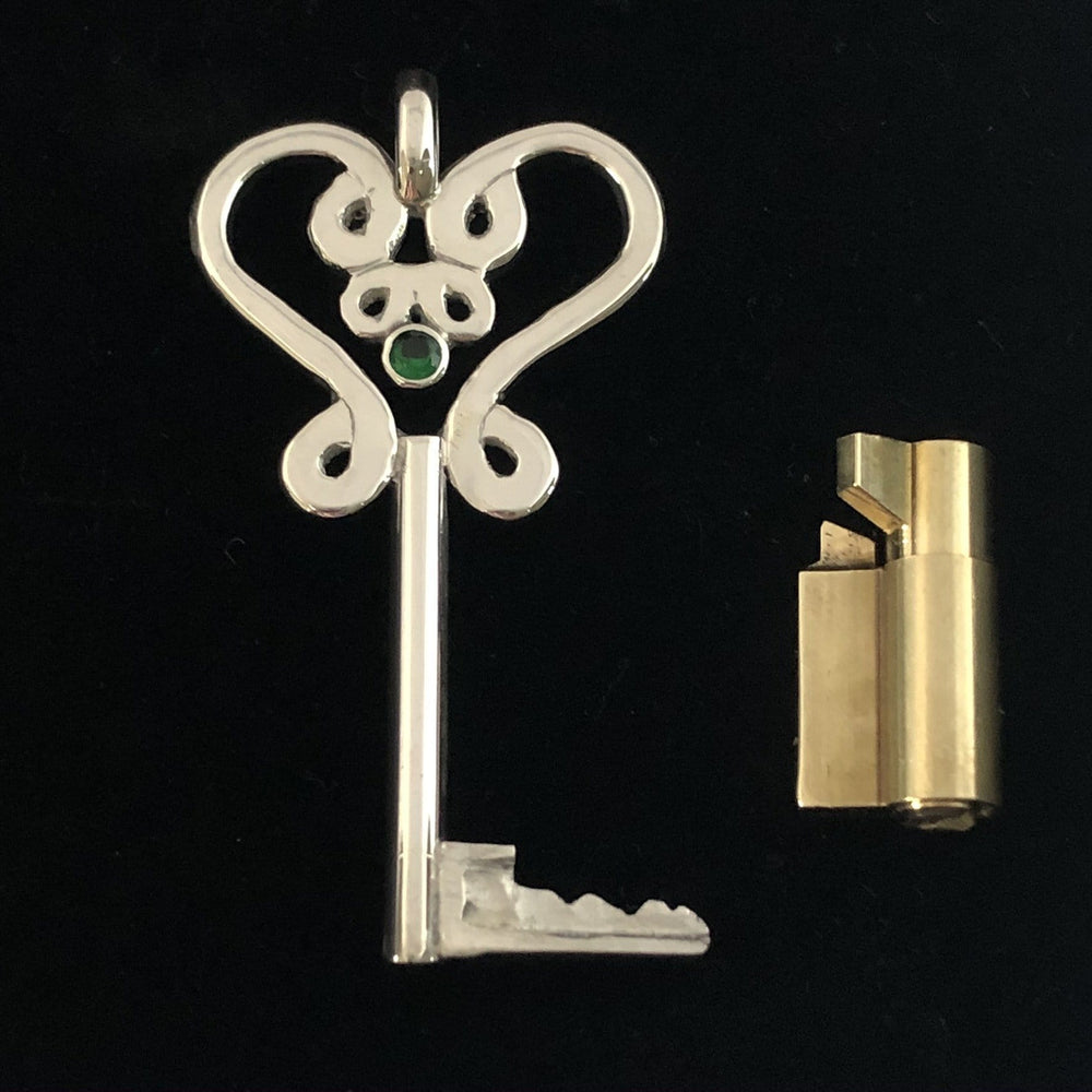 Llave Goddess de plata hecha a mano en el color de piedra de circonio de su elección con cerradura de cilindro Bürg Wachter a juego.
