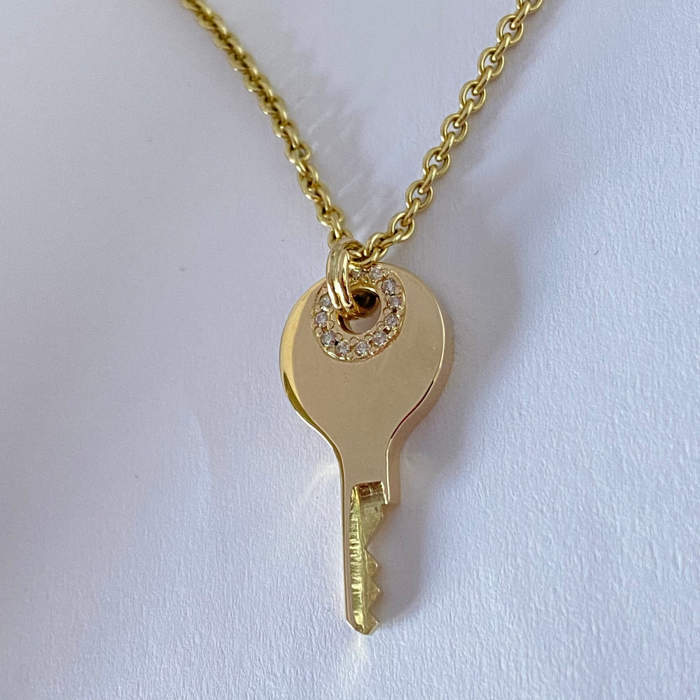 A stunning solid 14 carat gold key with 12 brilliant cut diamonds.