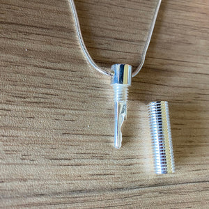 Sterling silver chastity pendant with a key hidden inside for a cylinder lock or padlock. Choose in the personalize section what you prefer for your chastity device.