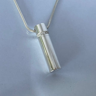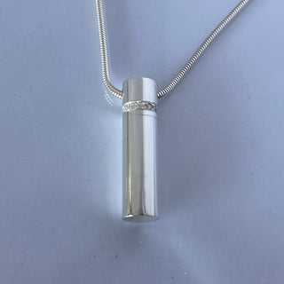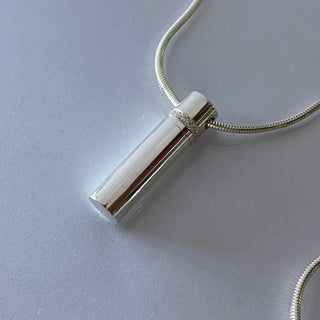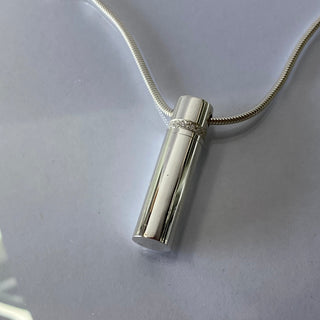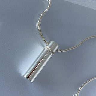 Handmade in sterling silver and we recommend a silver snake necklace because this will fit perfectly through the hole in the pendant.
