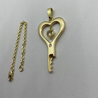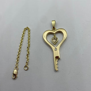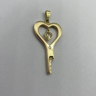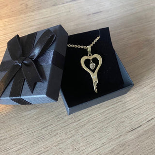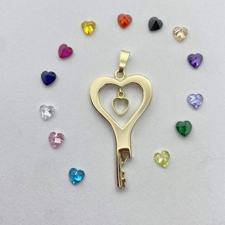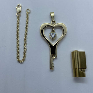 Look a sweet the heart shaped zirconia (or diamond) stone is dangling in the middle of this handmade chastity key.