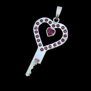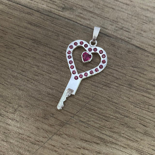It's a sterling silver key with a heart shaped stone in the middle of the heart.